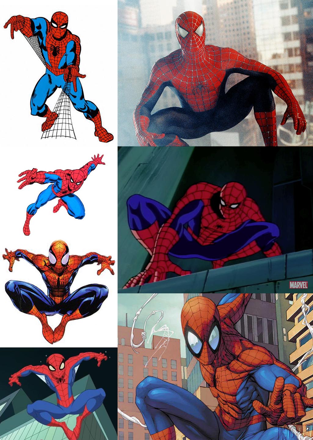 Let’s take a moment here. This collage features Spider-Man as he’s appeared in several forms of media. What’s different? His eyes are kind of different, yeah. The blue is different shades here and there. The webbing on his suit is straight sometimes. He’s small in some pics, beefy in others. All of these things can be attributed to different artists’ whims and periodic make-overs though. Putting these things aside, can you tell me what else is different? That’s right! You got it!