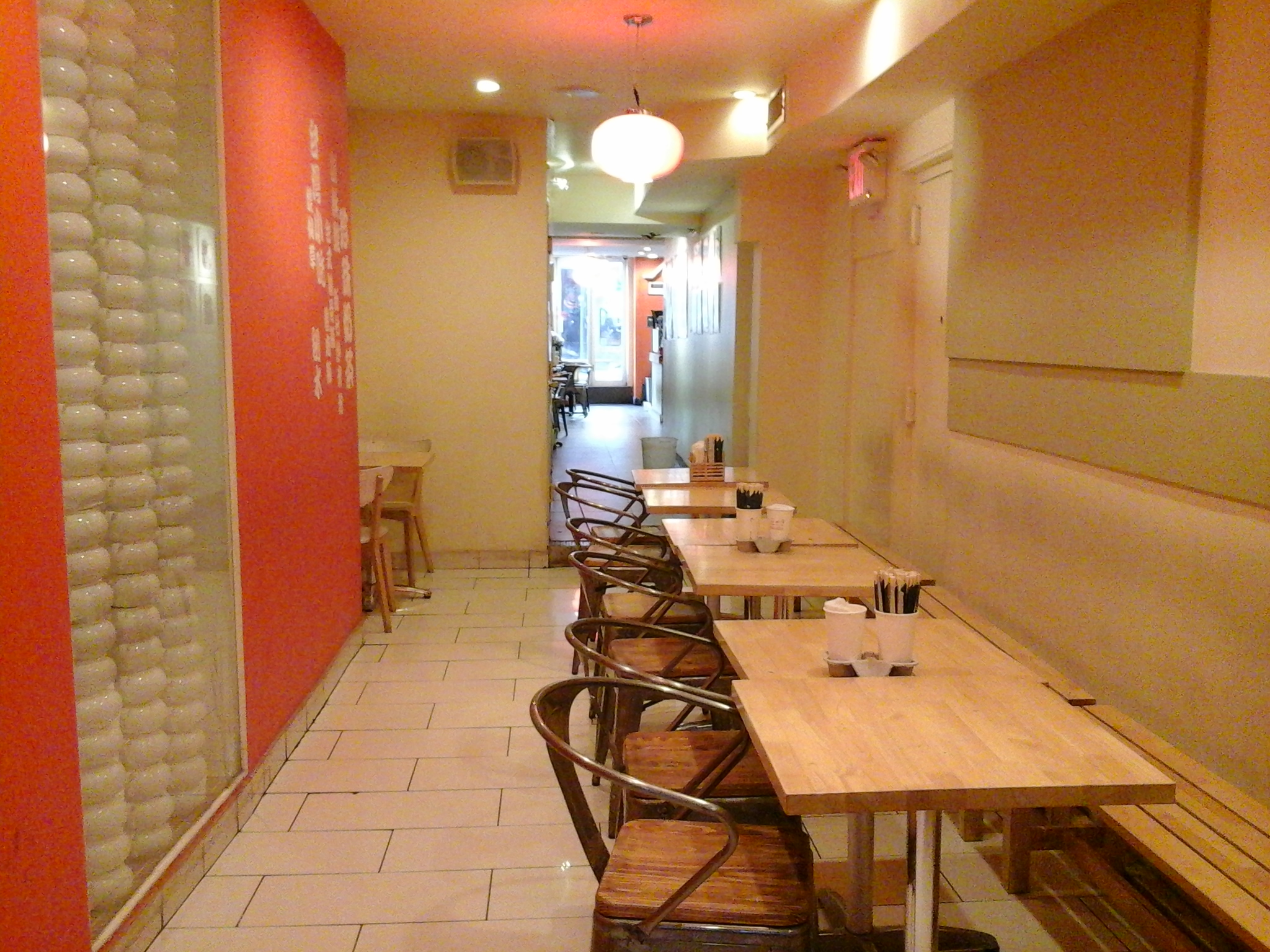 There’s also this long hallway that completely splits its two seating areas. There’s the one in front, where social people almost automatically sit down and chat. And then there’s the one in back (pictured above), still colorful and inviting but… tucked down a long hallway.