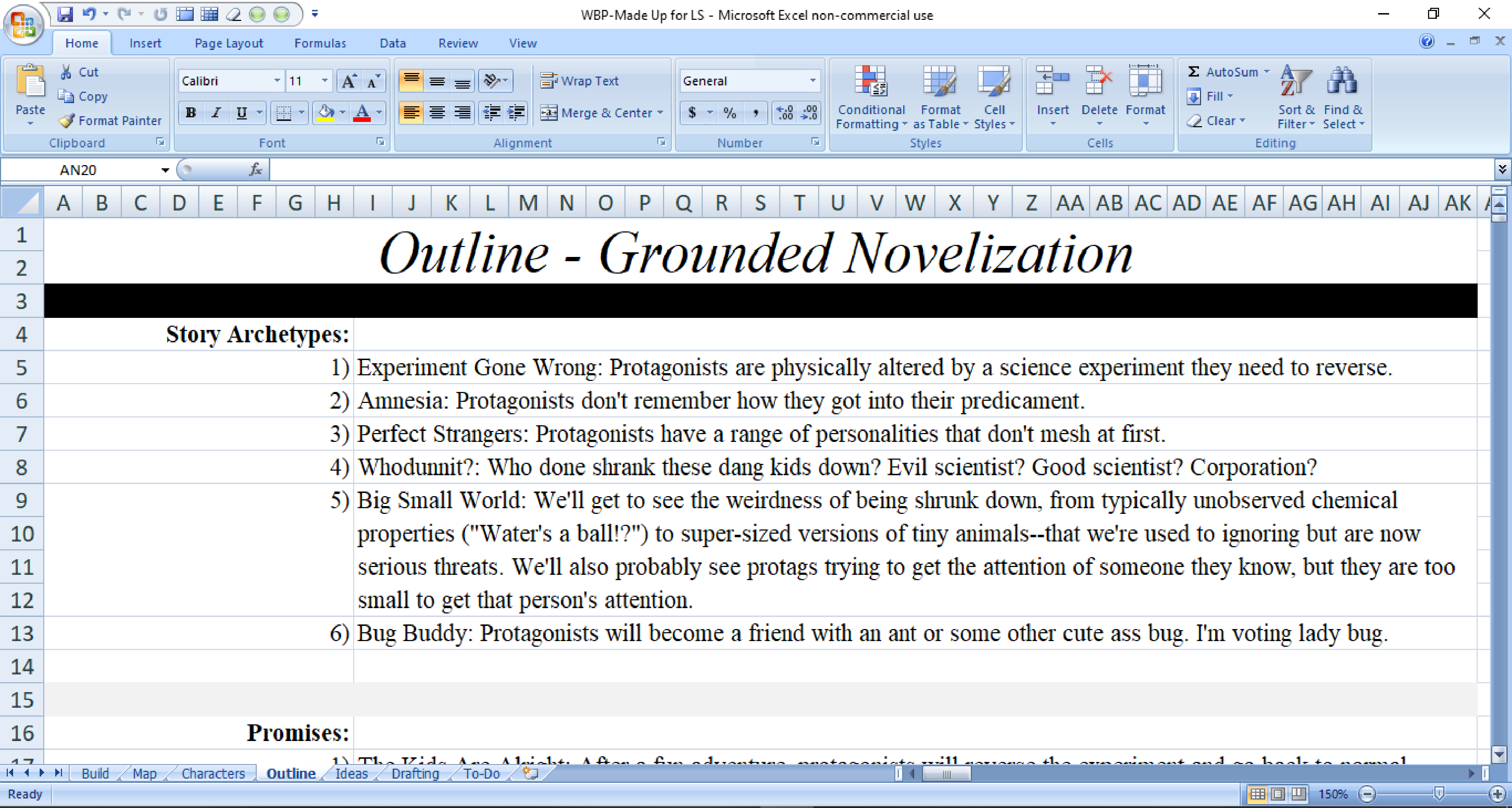 My goal with Archetypes is to just lay out what’s been done by other stories similar to mine. If my story features a Terminator-like character, for example, I jot down a heading like “I’ll Be Back,” think about the iconic things the Terminator did in Terminator or Terminator 2 (depending on whether my Terminator is a robotic killing machine or a robotic hero), and then I try to summarize those iconic things.
