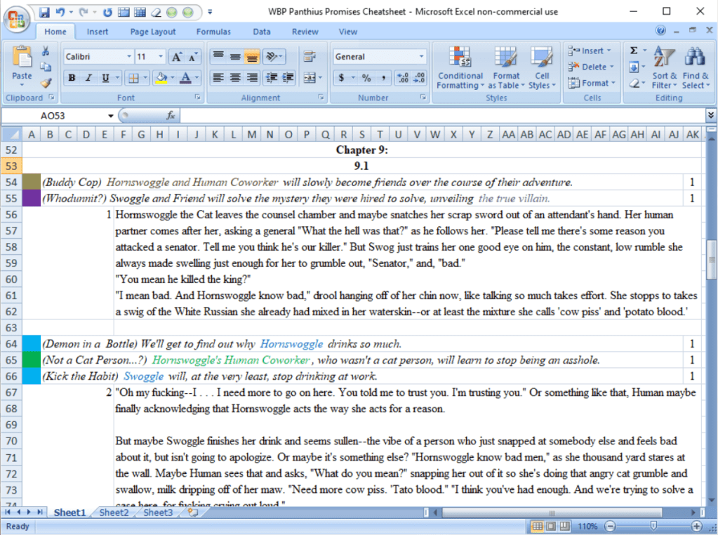 If you’re new here, yes, I am a writer. But also, I am the most bureaucratic writer that exists. Seriously, from what I’ve seen (and I’m just realizing it as I write this—holy shit), I weirdly break my stories down into data–on clean, literal spreadsheets–more than any other writer I know. I seriously use Excel.